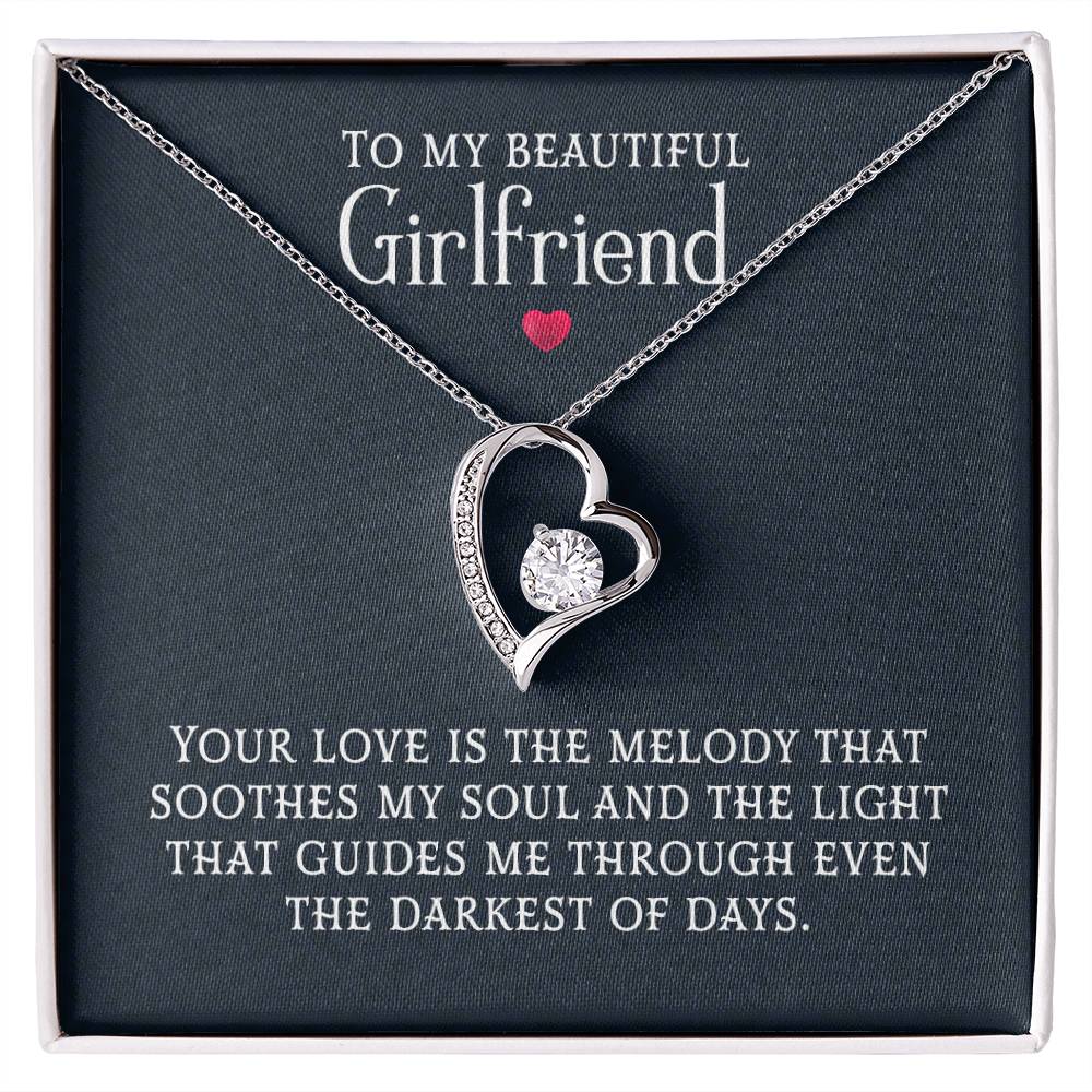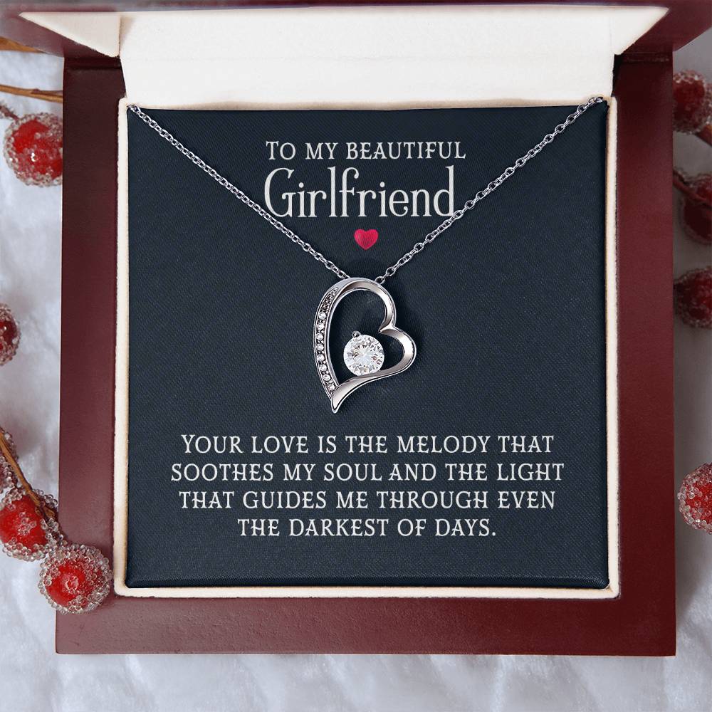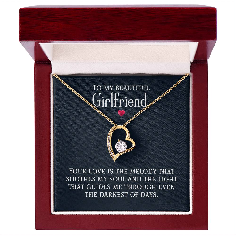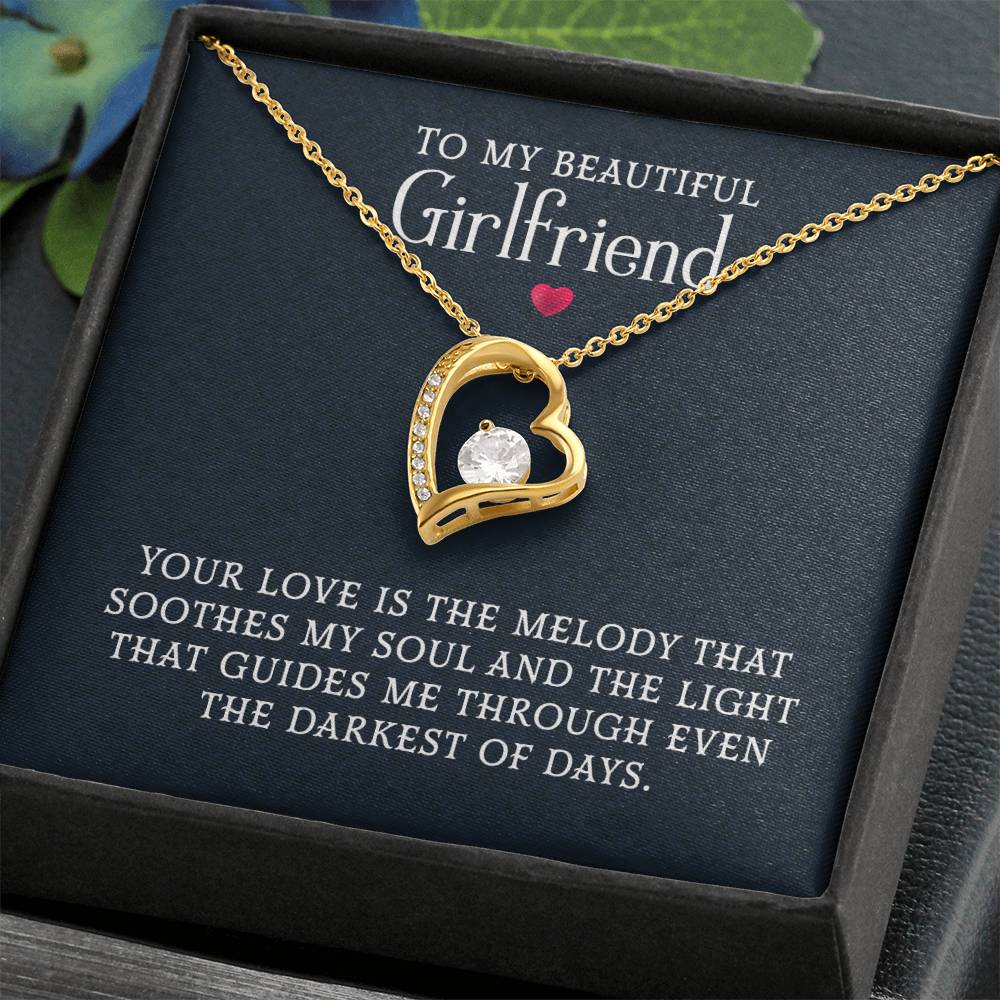The dazzling Forever Love Necklace is sure to make her heart melt! This necklace features a stunning 6.5mm CZ crystal surrounded by a polished heart pendant embellished with smaller crystals to add extra sparkle and shine. Beautifully crafted with either a white gold or yellow gold finish, be sure to give her a classic gift she can enjoy everyday.